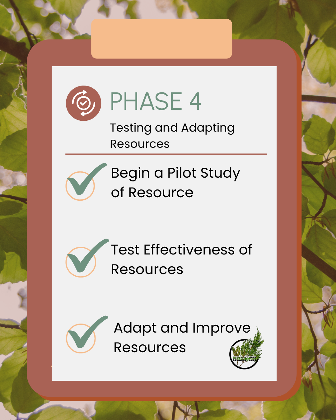 Phase Four is about testing the effectiveness of our training resources and making changes.